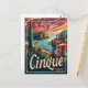 A vibrant and nostalgic depiction of Cinque Terre, Italy, known for its colourful cliffside villages and stunning coastal views. The design captures the picturesque towns of Monterosso, Vernazza, Corniglia, Manarola, and Riomaggiore, perched along rugged cliffs overlooking the azure Mediterranean Sea. Rendered in a vintage style, the artwork evokes the charming and scenic beauty of Cinque Terre, inviting viewers to explore its unique landscape and coastal allure.