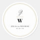 A modern minimalist wedding party favour sticker design featuring the couple's monogram and classic typography in a classic layout.