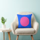 A pillow with a minimal abstract circle design in Hot Pink and Blue. The colours alternate on each side.