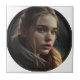 A painting of a girl in a circle, in the style of realistic hyper-detailed rendering, detailed character illustration