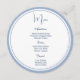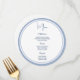 Menu Card is shown in the white basic matte paper in the circle shape with script and standard text in navy blue.