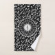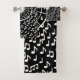 tylish fashionable music themed designer towel set in classic black and white featuring a circle of fifths wheel with white random music notes background, great additional to the music themed bathroom or en suite