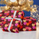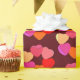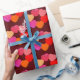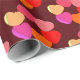 A wreath of many-coloured transparent glass-like hearts, repeated again and again on a deep red background--you can't say "I love you" too often--right? Just the right touch for that valentine gift you bought.