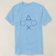 A t shirt with a square, circle, x, and triangle