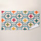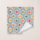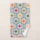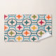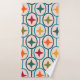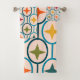 This towel set has a mid-century modern design of teal circles strung together with stars inside each in retro colours.