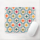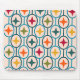 This mouse pad has a mid-century modern design of teal circles strung together with stars inside each in retro colours.