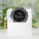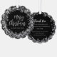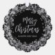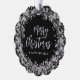 Silver circles, stars and dots on a black background surround the words "Merry Christmas" on the front of these paper ornament-shaped greeting cards. Your personalised thank you message and names on the back. Printed on your choice of paper, default is Pearl Ice, measures 5.25" x 5.25" and includes ribbon to hang the cards. MORE styles in our collection.