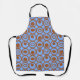 This apron has a geometric design of circles in rows with circles or ovals inside in brown on a field of blue.