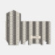 Circles and Stitches on stripes in two shades of cream and charcoal (near black). Other types of gift boxes with this design available as well as other colours.