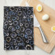 A non-repeating design of overlapping and transparent circular brush strokes in watercolor. Colors include navy, gray and tan on a black background. Overall bold appearance.