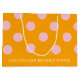 The modern "Circles - Veuve Before Vows" Gift Bag is a bubbly and elegant way to present gifts for celebratory occasions. This bag features a chic orange and pastel pink polka dot design adorned with the words "Veuve Before Vows," making it perfect for bachelorette parties, birthday parties, bridal showers, or engagements.