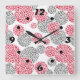 Circles with grey and red leopard skin print Square Wall Clock