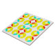 Rings rotate within rings over vivid yellow, aqua and red circles on a white background.