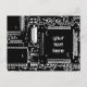 Modern design featuring a close up of a computer circuit board in black, grey and white. Postcard with a customisable design for you to personalise with your own text, pictures and ideas. customisable design for you to personalise with your own text, pictures and ideas. Created using an original photograph and digital techniques by Jess Perry.
