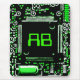 Modern design featuring a close up of a computer circuit board in green, black and white, and your initials written in green. Mousepad with a customisable design for you to personalise with your own text, pictures and ideas. Created using an original photograph and digital techniques by Jess Perry.
