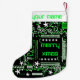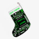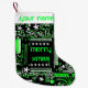 Modern design featuring a close up of a computer circuit board in green, white and black with an added festive touch. Stocking with a customisable design for you to personalise with your own text, pictures and ideas. Created using an original photograph and digital techniques by Jess Perry.