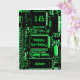 Modern design featuring a close up of a computer circuit board in green and black. greetings card with a customisable design for you to personalise with your own text, pictures and ideas. Created using an original photograph and digital techniques by Jess Perry.