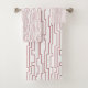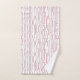 This towel set has an art deco design that looks like likes on a circuit board. The lines are running vertically in dusty rose on a field of white. Want a different colour? Message me.