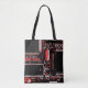 Modern design featuring a close up of a computer circuit board in red, black and white. Bag with a customisable design for you to personalise with your own text, pictures and ideas. Created using an original photograph and digital techniques by Jess Perry.