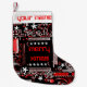 Modern design featuring a close up of a computer circuit board in red, white and black with an added festive touch. Stocking with a customisable design for you to personalise with your own text, pictures and ideas. Created using an original photograph and digital techniques by Jess Perry.