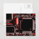 Modern design featuring a close up of a computer circuit board in red and black. Postcard with a customisable design for you to personalise with your own text, pictures and ideas. Created using an original photograph and digital techniques by Jess Perry.