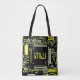 Modern design featuring a close up of a computer circuit board in yellow, black and white. Bag with a customisable design for you to personalise with your own text, pictures and ideas. Created using an original photograph and digital techniques by Jess Perry.