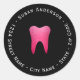 This circular dental address label is decorated with a faux pink glitter teeth image. The circular design makes it perfect as an envelope seal.