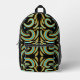 Backpack all over print cut sew style storage bag printed with a Circular, Linear And Tapered Shapes Abstract Art four part mirrored image repeating pattern original graphic design illustration by TheFabricSeal at Zazzle #ZazzleMade https://www.zazzle.com/store/thefabricseal