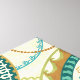 © Veronique Charron / Wild Apple. This image of circular patterns feature blue and gold colours. The image has a tan coloured, floral patterned background.