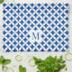 Bold graphic monogram kitchen towel in white on blue but the background can be changed if you you want to customise to your own colour choice to match your kitchen decor. Ideal for adding a coordinating colour into your kitchen and personalising your towel with your own initial or use it and code for different drying uses. Graphic and design by www.myittleeden.com