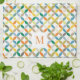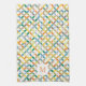 Bold graphic kitchen towel in shades of burnt orange, teal green blue, olive green, sap green, muted blue and white in a circles style design with a monogram in orange on white. Ideal for adding some interest in your kitchen. This design has plenty of different tonal colours to help with your colour co-ordination and a monogram for a personalised touch. Graphic and design by www.myittleeden.com