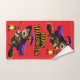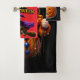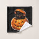Transform your bathroom into a haunted sanctuary with this whimsical Halloween three-piece towel set this coordinated collection features our fan favourite clown kitten with his glowing eyes and circus rough alongside the magical witch kitten soaring on her broomstick. Each towel is designed with a deep black background and bold happy Halloween typography making the vibrant purple oranges and gold truly pop.