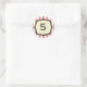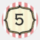 A circus themed birthday sticker featuring a background of faded red and white stripes. Personalise with your age inside golden bracket frame outlined in black. Matching invitations available at Jill's Paperie.