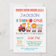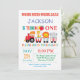 Circus Carnival Birthday Party Invitation. Boy 1st First Birthday Invitation. Circus themed Party. Red and White Background. For further customisation, please click the "Customise it" button and use our design tool to modify this template.