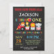 Circus Carnival Birthday Party Invitation. Boy 1st First Birthday Invitation. Circus themed Party. Chalkboard Background. For further customisation, please click the "Customise it" button and use our design tool to modify this template.