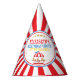 Come one, come all! Thank everyone for coming to the greatest birthday party under the big top with our red and blue circus carnival round hat templates. This circus carnival ticket birthday label features red circus tent background with a red and blue carousel on a hat design.