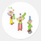 Three circus clowns, one juggling, one on a unicycle, and one with a flower under his hat are featured on our stick figure Circus Clowns cards, mugs, tote bags, mousepads, T-shirts, stickers, and more!