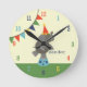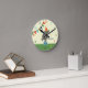 A clock featuring an illustration of a circus elephant standing on a platform wearing an orange hat. Personalise with your name to the bottom right of elephant.