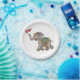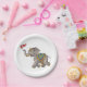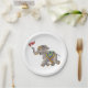 Cute little elephant in fancy blanket and head decoration.He's carrying a little flag in his trunk. Vintage artwork