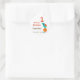 This modern and colourful birthday favour sticker is ideal for a birthday party with a circus theme. It features a circus elephant balancing on a ball abd holding the number one. A bottom banner adds to the festive look of this design. The colour palette is unisex and trendy. This eye-catching favour sticker is perfect to celebrate baby-s memorable first birthday.