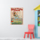 Vintage Sells Floto circus poster showing tight-rope walker M'lle Beeson prancing with a parasol, circa 1921.
