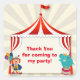 Cute sticker with red and white circus tent, a blue elephant and a clown with balloons. Perfect for party favour bags or boxes, or for envelope seals for the matching invitation that is available.