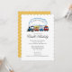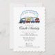Adorable circus train in primary colours with monkeys and an elephant for baby. Gender neutral baby shower invitation, simple and elegant with a circus theme with a polka dot pattern on back in your choice of colours. Personalise text as preferred.