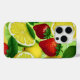 A vibrant iPhone case featuring bright lemons, limes, and strawberries in a fresh botanical style on a soft green background. The cheerful, summery palette adds a lively, uplifting touch to everyday tech while offering a stylish look for women who love fruity motifs, colourful accessories, and gift‑ready phone décor.