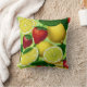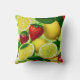 A vibrant throw pillow featuring bright lemons, limes, and strawberries in a fresh botanical style on a soft green background. The cheerful, summery palette adds a lively accent to living rooms, bedrooms, and cosy relaxation spaces. A stylish choice for women who love fruity motifs, colourful décor, and gift‑ready home accessories