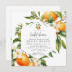 "She's Found her Main Squeeze" bridal shower invitation that features bright orange graphics and a modern font. The citrus design is perfect for a summer bridal shower.