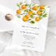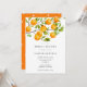 Rustic citrus theme bridal shower invitation card featuring watercolor illustration of orange fruits on a tree branch. Perfect for a summer celebration.