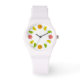A mid century inspired design with a retro touch featuring stylised citrus fruit slices - orange, lemon, lime and pink grapefruit, on a white background. A customisable design for you to personalise with your own text, images and ideas. An original digital art image created by Jess Perry at QuirkyChic Retro.
