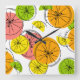 Cool design with a retro touch featuring stylised citrus fruit slices - orange, lemon, lime and pink grapefruit, on a white background. A customisable design for you to personalise with your own text, images and ideas. An original digital art image created by QuirkyChic.