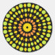 Citrus colours, orange, lime green, lemon yellow on black background.